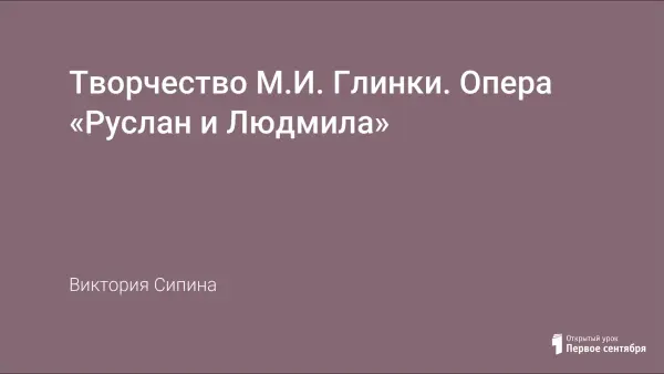 Урок музыки в 6-м классе из раздела «Мир образов камерной и симфонической музыки» знакомит учащихся с творчеством М.И. Глинки, оперой «Руслан и Людмила». В ходе урока анализируется увертюра из «Руслана и Людмилы» по комплексу выразительных средств, идет работа над вокально-хоровыми навыками в песне Н.Забилы «Гуде вітер вельми в полі», созданием эмоционально-художественного образа песни, ее исполнительским планом.