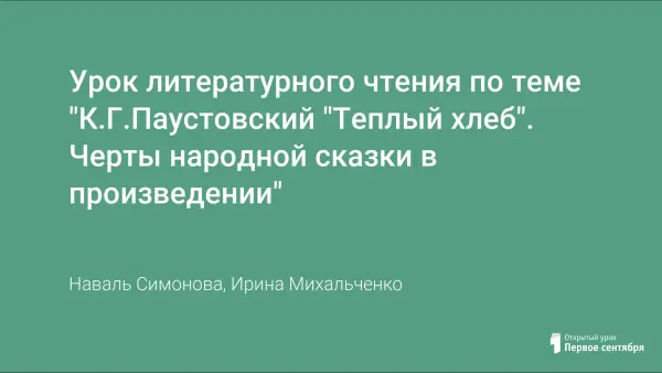 Урок литературного чтения по теме "К.Г.Паустовский "Теплый хлеб". Черты народной сказки в произведении"