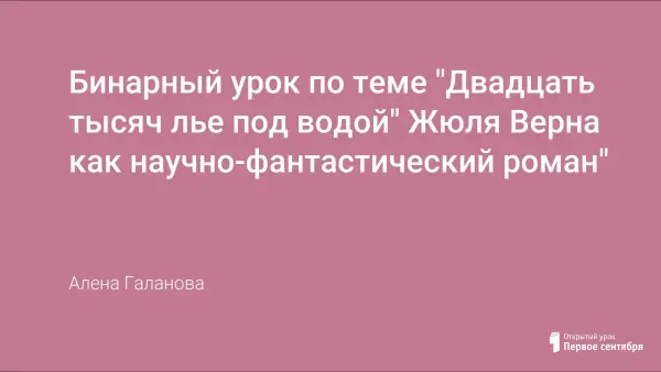 Бинарный урок (литература и география) знакомит учащихся с жанром научно-фантастического романа, способствует закреплению навыков работы с географической картой, развивает умения анализировать, сопоставлять, делать выводы. Совершая экскурс в историю, используя знания по географии, учащиеся анализируют гипотезы Ж.Верна, подтверждая или опровергая факты, приведенные писателем в романе. Работая в группах, учащиеся готовят сообщения о научных и фантастических фактах в романе, как литературоведы составляют аннотацию к роману.