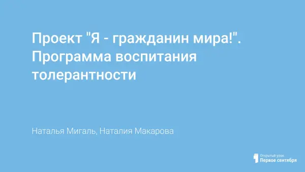 Цель программы: укоренение в школе духа толерантности, формирование отношения к этому понятию как к важнейшей ценности общества, а также вовлечение молодежи в социальную практику и ее информирование о потенциальных возможностях развития; развитие созидательной активности молодежи. Программа рассчитана на учебный год.