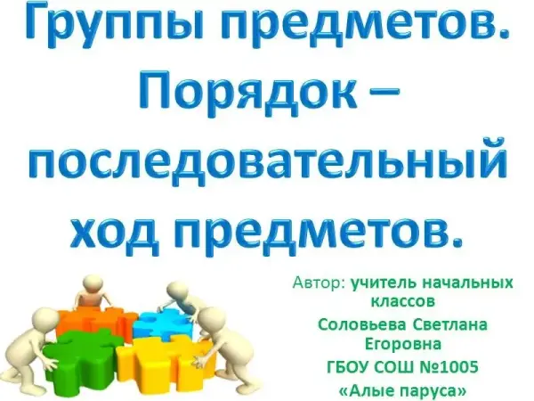 Примерами групп служат цифры от 1 до 10, геометрические фигуры, числовые выражения, времена года, сказочные герои. Учащиеся устанавливают порядок по цвету, размеру, форме, повторяют понятия «раньше», «позже», развивают вычислительные навыки, память, внимание, учатся работать самостоятельно. Все задания в презентации к уроку сопровождают персонажи мультфильма – кот Леопольд и мышки, что делает урок занимательным, а этапы урока – связанными между собой.