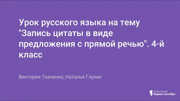 Урок русского языка на тему "Запись цитаты в виде предложения с прямой речью". 4-й класс