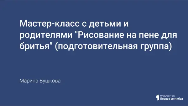 Цель занятия: укрепление партнерских взаимоотношений детей и родителей в процессе творческой деятельности. Задачи: познакомить детей и родителей с нетрадиционной техникой рисования – «Рисование на пене для бритья»; воспитывать уверенность в себе, в своих творческих возможностях; сформировать у родителей интерес к деятельности детей на занятиях по нетрадиционному рисованию.