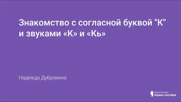 Цель урока: познакомить детей с новой буквой "К" и звуками «К» и «Кь»; находить и определять буквы в словах; чтение слогов и слов через игру; учить штриховать и прописывать букву «К».