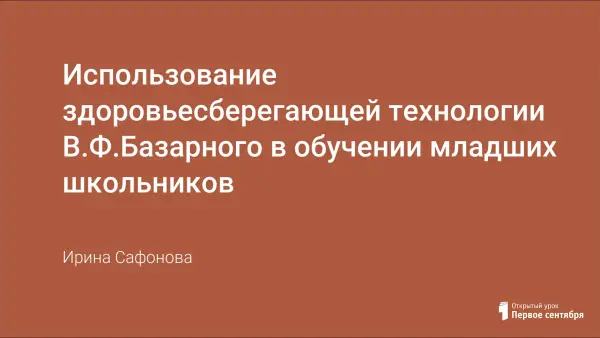 Методика В.Ф. Базарного - это здоровьесберегающая технология, необходимая для формирования у младших школьников понимания ценности здоровья, создания развивающей образовательной среды для детей, имеющих ограниченные возможности здоровья.