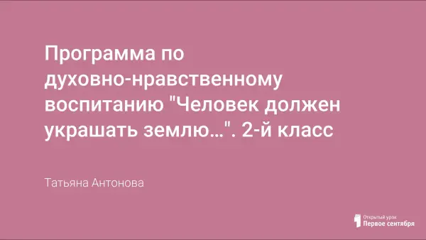 Программа реализует духовно-нравственное и патриотическое направление в 1–4-x классах в рамке Федерального государственного образовательного стандарта общего образования второго поколения. Цель программы: сохранение духовно-нравственного здоровья детей, приобщение к историческим и духовным ценностям родного края, воспитание уважения к культурным и национальным традициям, формирование поисковой краеведческой деятельности.