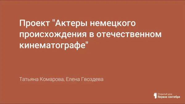 Проект "Актеры немецкого происхождения в отечественном кинематографе"