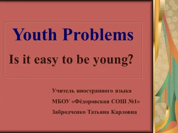Урок разработан на основе учебника В.П. Кузовлева, Н.М. Лапа и др. «English 10–11» c использованием ИКТ, применение которых позволяет реализовать принцип доступности и системности изложения материала, способствует развитию наглядно-образного мышления (за счет повышения уровня наглядности) и повышению мотивации к изучению английского языка. Данный урок может быть проведён в качестве обобщающего урока в системе уроков по теме «Проблемы молодежи», а также в качестве внеклассного мероприятия.