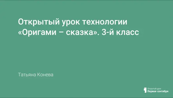 Цель урока: познакомить детей с новым изделием из бумаги на основе двойного квадрата, со сказкой в технике «оригами». Урок активизирует деятельность младших школьников.