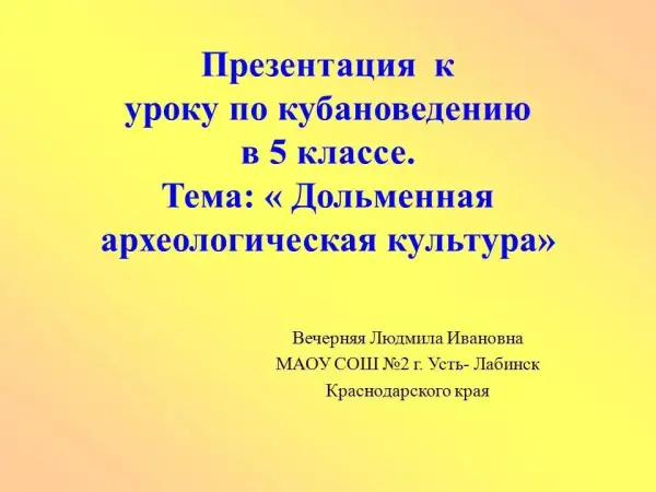 Кубань – уникальная природная и историко-культурная территория, занимающая одно из первых мест в России по количеству памятников истории и культуры от эпохи палеолита до современности. Учащиеся познают историческое прошлое края, знакомятся с памятниками мегалитического периода на территории Кубани, а также с самыми древними археологическими культурами.