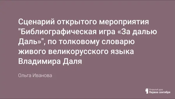 Мы начнем игру по словарю В.И.Даля, где каждый тур уведет в свою даль: природную, историческую, сказочную, литературную, мистическую и прикольную. С каждой далью мы будем открывать для себя даль культуры родного языка, и за каждой далью будет Даль.