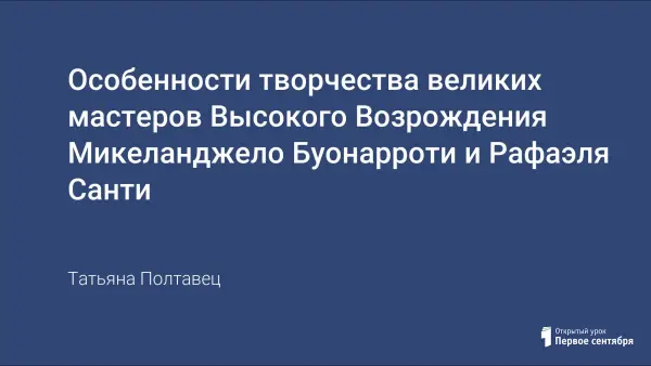 На уроке учащиеся 7-го класса знакомятся с творчеством художников Высокого Возрождения: Леонардо да Винчи, Микеланджело, Рафаэля Санти, а также учатся анализировать произведения искусства.