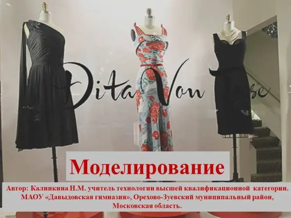 Цель работы: познакомить учащихся с видами и способами моделирования. Представлены модели изделий. В заключение дана информация о профессиях, связанных с дизайном одежды.