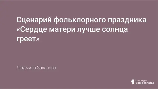 Фольклорные праздники и досуги воспитывают у дошкольников любовь к духовным традициям русского народа, развивают вкус и физическое здоровье, формируют нравственные качества личности ребенка уважительным отношением к маме, семье, близким родным людям с помощью музыкальных произведений. Сценарий основан на фольклорном материале, любимом и детьми, и воспитателями.