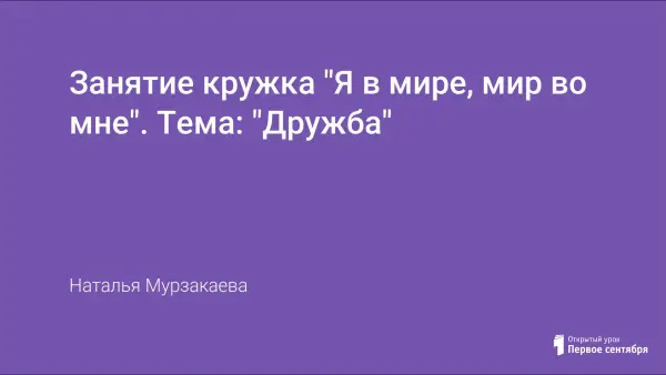 Цель занятия: формировать у учащихся представление о дружбе, как о важнейшей нравственной ценности.
