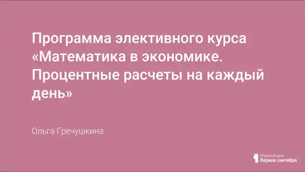 Предлагаемый курс демонстрирует учащимся применение математического аппарата в решении бытовых проблем, вопросов рыночной экономики и задач технологии производства; ориентирует учащихся на обучение по естественно-научному и социально-экономическому профилю. Можно изучать любой из семи модулей, входящих в элективный курс. Программа рассчитана для учащихся 10-го класса, на 34 часа классных занятий и проводится в течение всего учебного года.