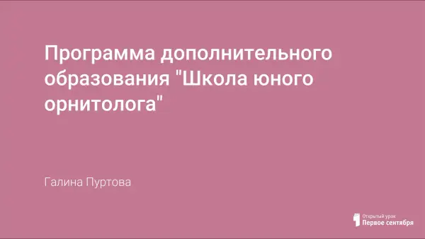 Данная программа даёт возможность подготовить поколение любителей, которые, не будучи профессиональными орнитологами, найдут себе дело для души - смогут не только путешествовать, наблюдая и определяя птиц, но также научатся проводить учёты их численности, заниматься фотоохотой, научатся проводить массовые акции, пропагандирующие защиту родной природы. А птицы будут проводниками в мир знаний и увлечений.