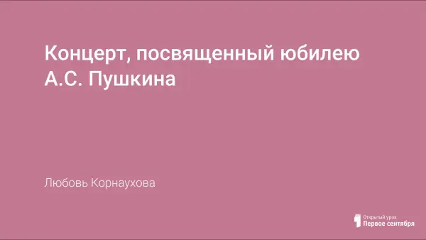 Сценарий посвящен юбилею поэта, создан на основе произведений, близких пониманию детьми дошкольного возраста. В концерт включены отрывки из сказок Пушкина и музыкальные произведения П. Чайковского, Н. Римского-Корсакова, Г. Свиридова из программы дошкольного воспитания. Для программы концерта сшиты костюмы для взрослых «Времена года», русские народные детские костюмы к хороводу.