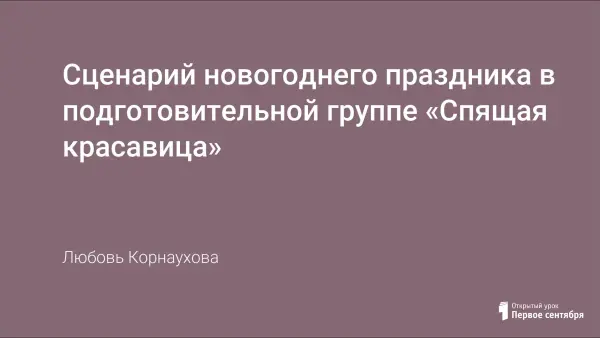 В сценарии использована инсценировка Зинаиды Роот «Спящая красавица», текст которой адаптирован для детей подготовительной группы. Включены отрицательные персонажи из сказки «Буратино» с авторскими текстами – как стихотворными, так и игровыми.