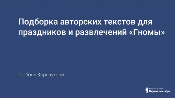 Подборка авторских текстов в помощь музыкальным руководителям ДОУ для праздников и развлечений, где основные персонажи – Гномы и Белоснежка. Представлен материал на темы «Характер – поведение», «Трудолюбие – лень», «Дни недели», «Здоровье».