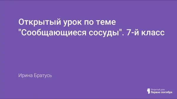 Открытый урок по теме "Сообщающиеся сосуды". 7-й класс
