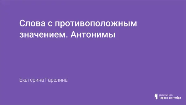 Представлена презентация к занятию по теме "Слова с противоположным значением. Антонимы".