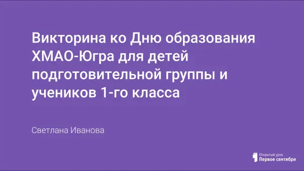 У каждого жителя России есть свой край, уголок, в котором он родился. Для автора такой материнский уголок – Ханты-Мансийский автономный округ – Югра. 10 декабря у края праздник – день его рождения, образования. Этой знаменательной дате посвящена викторина. Цель: закрепление знаний детей о родном крае – ХМАО-Югра и пробуждением интереса и любви к родному краю.