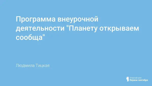Главная особенность курса «Планету открываем сообща» - познакомить школьников с одним из интереснейших школьных предметов – географией, сформировать интерес к этому предмету, научить шестиклассников внимательно смотреть на окружающий мир, понимать язык живой природы. Цель программы: создание условий для успешного освоения учениками основ исследовательской деятельности.