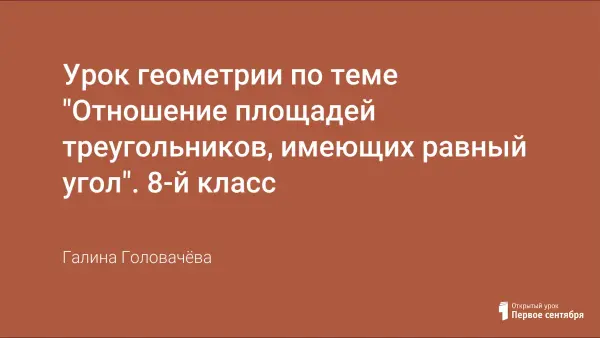 Урок геометрии в 8-м классе изучает новый материал. Ученики формулируют и доказывают теорему об отношении площадей треугольников, имеющих один равный угол; учатся применять теорему при решении задач на нахождение площадей многоугольников. Цели: развивать интуицию, умения анализировать условие задачи, логически мыслить, обобщать полученные результаты; воспитывать самостоятельность и самоконтроль.