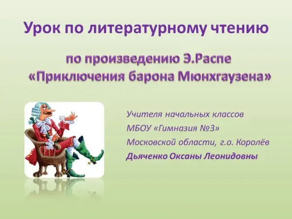 Отличительной особенностью данного урока, является форма работы детей – в группе, творческие задания, а также викторина, подкрепленная презентацией с интересными переходами от вопроса к ответу. Цели урока: учить пересказу эпизодов, написанию сочинений-миниатюр; развивать навыки анализа художественного текста, навыки пересказа, умение выделять главные моменты в поведении героя.