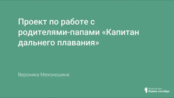 Проект будет полезен для педагогов дошкольных учреждений, для работы воспитателя с родителями детей логопедической группы. В проекте прописана основная цель, определены задачи, принципы взаимодействия с родителями и составлен перспективный план работы на учебный год. Акцентируется внимание на роли семьи как целостной системе, на работе с родителями – папами детей логопедической группы и освящена роль педагога.