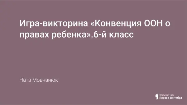 Мероприятие проводится в рамках Всемирного дня ребенка и Всероссийского дня правовой помощи детям (20 ноября). В работе представлен полный комплект материалов для игры-викторины «Конвенция ООН о правах ребенка» в 5–7-х классах после подготовительной работы.