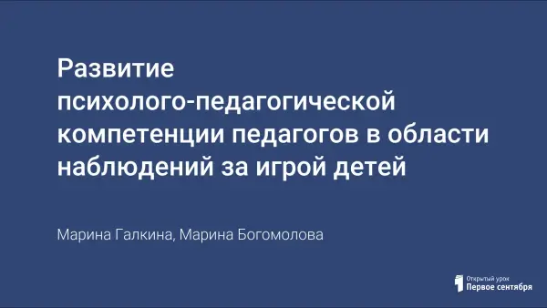 Развитие психолого-педагогической компетенции педагогов в области наблюдений за игрой детей