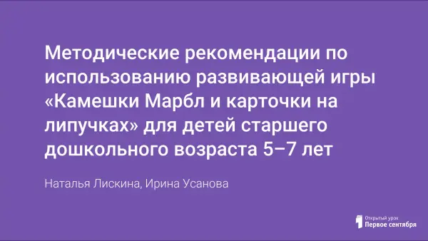Методические рекомендации по использованию развивающей игры «Камешки Марбл и карточки на липучках» для детей старшего дошкольного возраста 5–7 лет