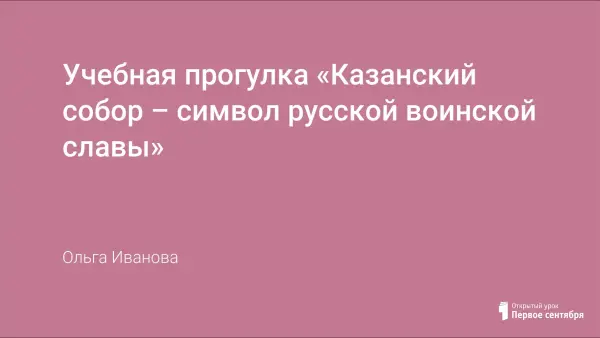 Занятие проводится в системе занятий «История города» или как внеклассная работа. Работа с подгруппами 3-го класса (по 7–10 человек). Цель занятия: осознание учащимися значения Казанского собора как памятника русской военной славы.