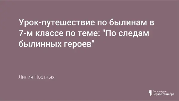 Урок призван обобщить, систематизировать, углубить литературоведческие знания, показать красоту, образность языка былин; на примерах былинных текстов прикоснуться к культуре, истории русского народа, сформировать уважительное отношение к родному языку, культуре; заинтересовав былинным жанром, подвигнуть учащихся к словесному творчеству (сочинению текста в стиле былины).