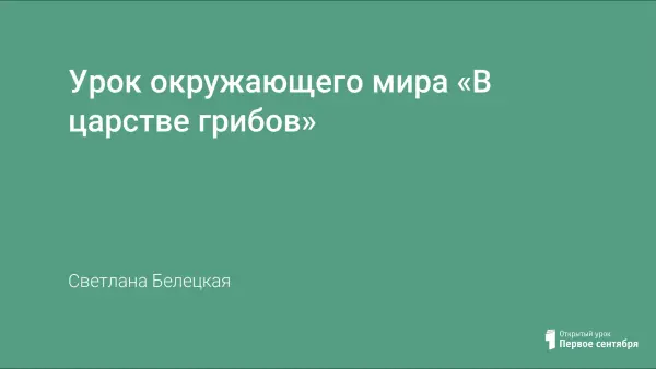 Цель урока: дать представление о грибах как отдельном царстве природы, развивать познавательные процессы на основе исследовательских заданий и умении участвовать в дискуссии (анализ, синтез), воспитывать бережное отношение к объектам окружающего мира, осознание ценности всех живых существ в природе.