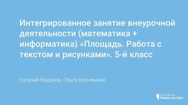 Интегрированное занятие внеурочной деятельности (математика + информатика) «Площадь. Работа с текстом и рисунками». 5-й класс