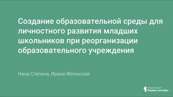 Создание образовательной среды для личностного развития младших школьников при реорганизации образовательного учреждения