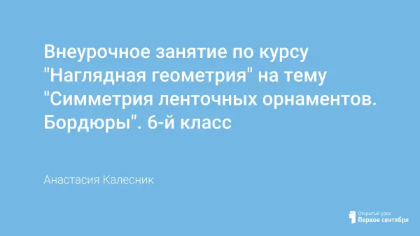 В начале занятия дети определяют тему занятия, выполняют задания на повторение. Определив тему занятия, знакомятся с понятием бордюр. Учатся строить бордюры, сами выводят алгоритм их построения, выполняют практическое задание на построение орнамента. Почти все этапы урока проходят с применением интерактивной доски SmartBoard.