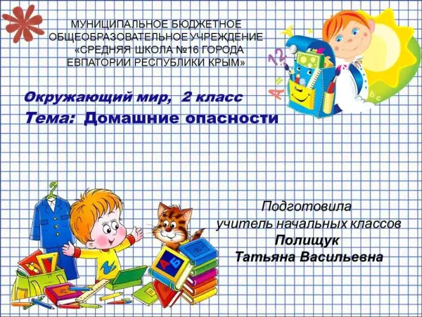 Цель урока: учащиеся научатся объяснять потенциальную опасность бытовых предметов; осознавать необходимость соблюдения правил безопасного поведения в быту.