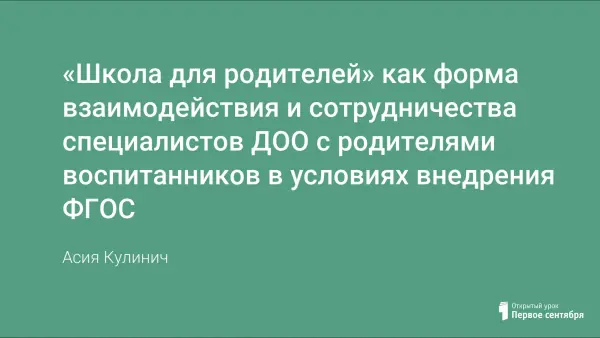 «Школа для родителей» как форма взаимодействия и сотрудничества специалистов ДОО с родителями воспитанников в условиях внедрения ФГОС