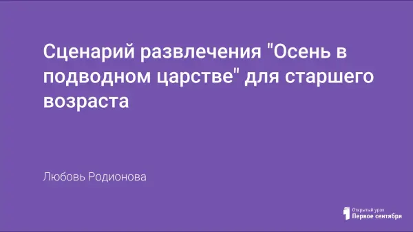 Это мероприятие – своеобразное путешествие к Морскому царю.Оно объединяет в себе задачи развлекательного и познавательного направления. Дети вспоминают осень и делятся своими впечатлениями в виде танцев, песен, хороводов, игр.