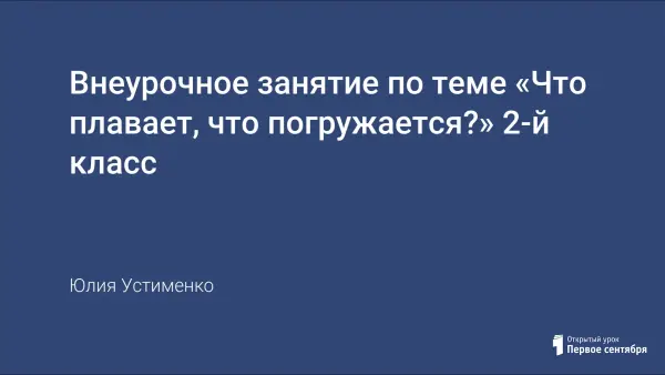 Занятие предполагает лабораторное оборудование «Плавание и погружение». Рассматривается плавание и погружение сплошных тел. В исследовательской работе учащиеся экспериментальным методом выяснят, какие тела плавают, а какие погружаются и делают вывод, из каких материалов можно сделать плот, а из каких нет.