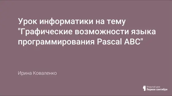 На уроке информатики отрабатываются умения и навыки по алгоритмизации и программированию; закрепляются знания по основам алгоритмизации и графическим возможностям программы Pascal ABC.