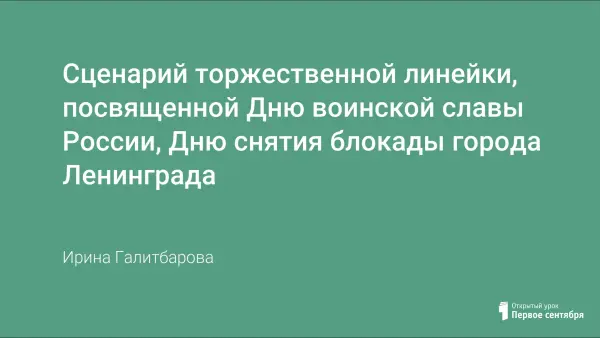 Разработка сценария торжественной линейки, посвященной Дню воинской славы России, Дню снятия блокады города Ленинграда.