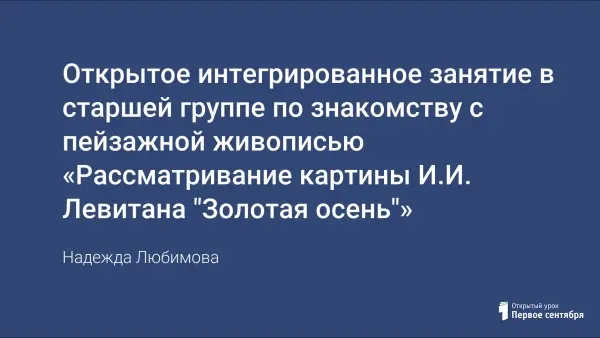 Урок развивает у детей художественное восприятие пейзажной картины. Учащиеся рассматривают репродукцию картины, обращают внимание на цвет и цветосочетания как средство передачи осенних явлений. Закрепляется представление о том, что изображение деревьев, луга, поля, т. е. изображение природы называется пейзажем. Учащиеся знакомятся с новой техникой рисования – печати листьями.