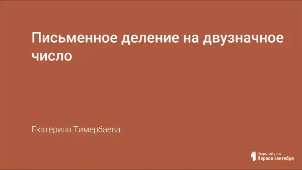 Урок формирует навыки письменного деления на двузначное число. Изучается и закрепляется с помощью алгоритма случай деления на двузначное число.