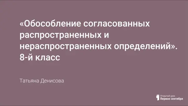 Цель урока: закрепление умения определять грамматические условия обособления распространенных и нераспространенных определений и отработка пунктуационных навыков; закрепить навык написания "не" с причастиями.