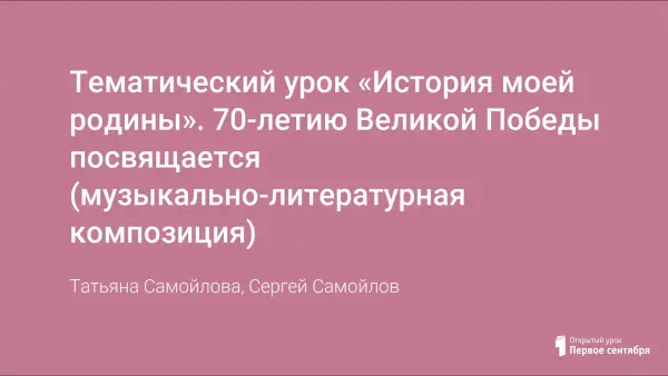 Тематический урок «История моей родины». 70-летию Великой Победы посвящается (музыкально-литературная композиция)